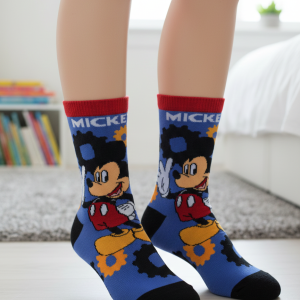 9-12 Yaş Kız Çocuk Mavi Mickey Mouse Desenli Canlı Renkli Pamuklu Günlük Çorap