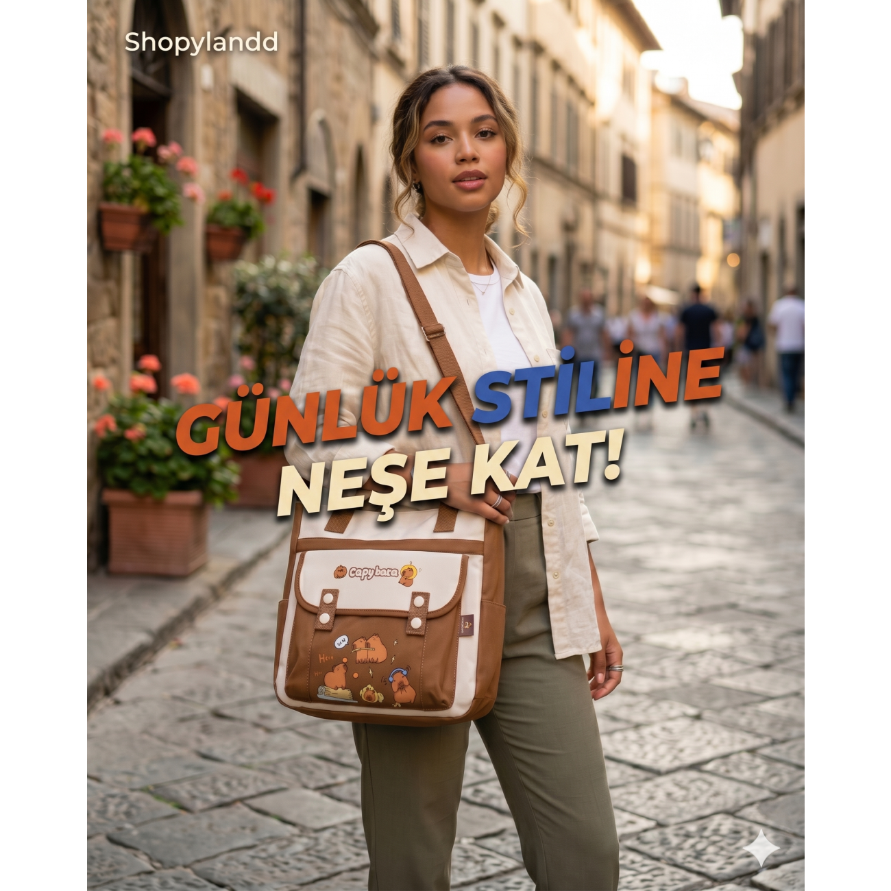Geniş ana bölmesi ve ayarlanabilir omuz askısı sayesinde, okulda, iş yerinde veya hafta sonu gezilerinde konforlu bir kullanım sunar. Kitaplarınız, tabletiniz ve kişisel eşyalarınız için ideal bir alan sağlayan bu messenger çanta, fonksiyonelliği estetik tasarımla birleştirir. Kawaii moda akımından ilham alan detayları ve toprak tonlarındaki renk paletiyle her türlü kıyafete kolayca uyum sağlar. Hem kendiniz için harika bir aksesuar hem de sevdikleriniz için unutulmaz bir hediye seçeneğidir. Modern şehir hayatının dinamizmine uygun, sağlam ve dikkat çekici bir çanta arayanlar için özel olarak tasarlanmıştır.