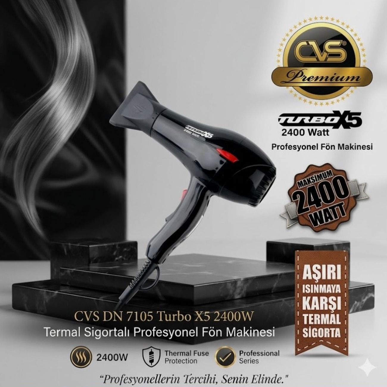 CVS DN 7105 Turbo X5 2400W Termal Sigortalı Profesyonel Fön Makinesi