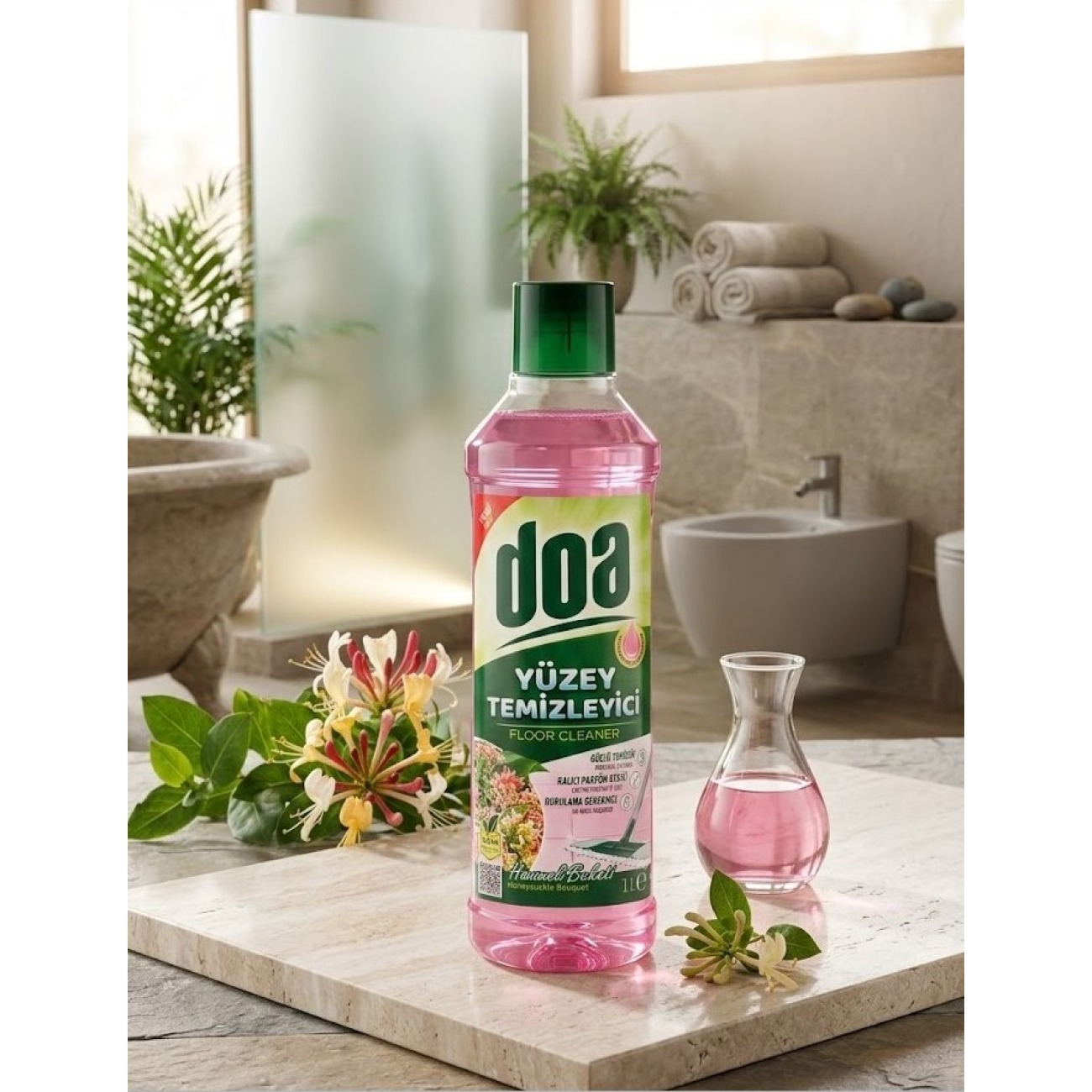 Doa Yüzey Temizleyici Hanımeli Buketi, özel geliştirilmiş formülüyle yaşam alanlarınızda profesyonel temizlik ve eşsiz bir ferahlık sağlar. Fayans, mermer, granit ve tüm silinebilir yüzeylerde iz bırakmadan mükemmel sonuç verir.