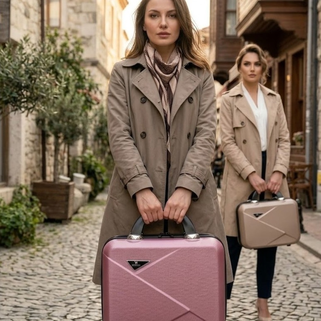 Modern kadının seyahat ve iş hayatındaki en şık yardımcısıyla tanışın. Bu makyaj el valizi, estetik geometrik dış yüzeyi ve yüksek dayanıklılığa sahip sert kasa yapısıyla kozmetik ürünlerinizi güvenle taşımanızı sağlar. Geniş iç hacmi ve pratik bölmeleri sayesinde, kişisel bakım ürünleriniz her an düzenli kalır.
