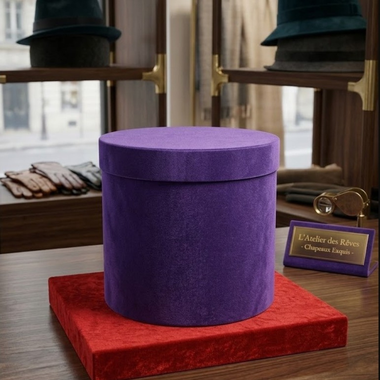 Lüks Mor Kadife Silindir Dekoratif Kutu ve Şapka Saklama Kutusu