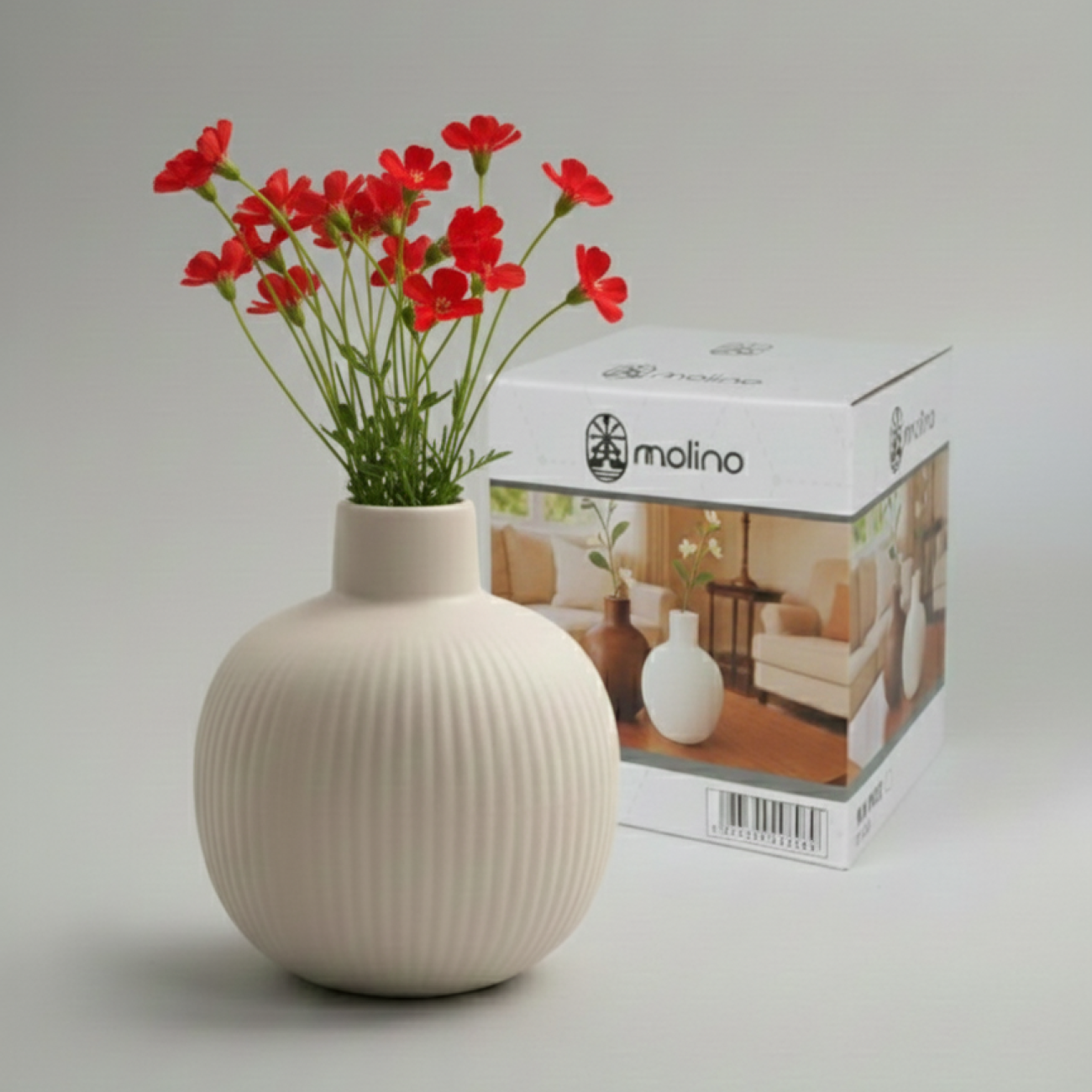 Evinizin atmosferini değiştirecek, zarafeti ve modern tasarımı bir araya getiren Molino Çizgili Top Vazo ile tanışın. Minimalist dekorasyon anlayışının en şık örneklerinden biri olan bu vazo, dikey çizgili dokusu ve dairesel formuyla mekanlarınıza derinlik katar.