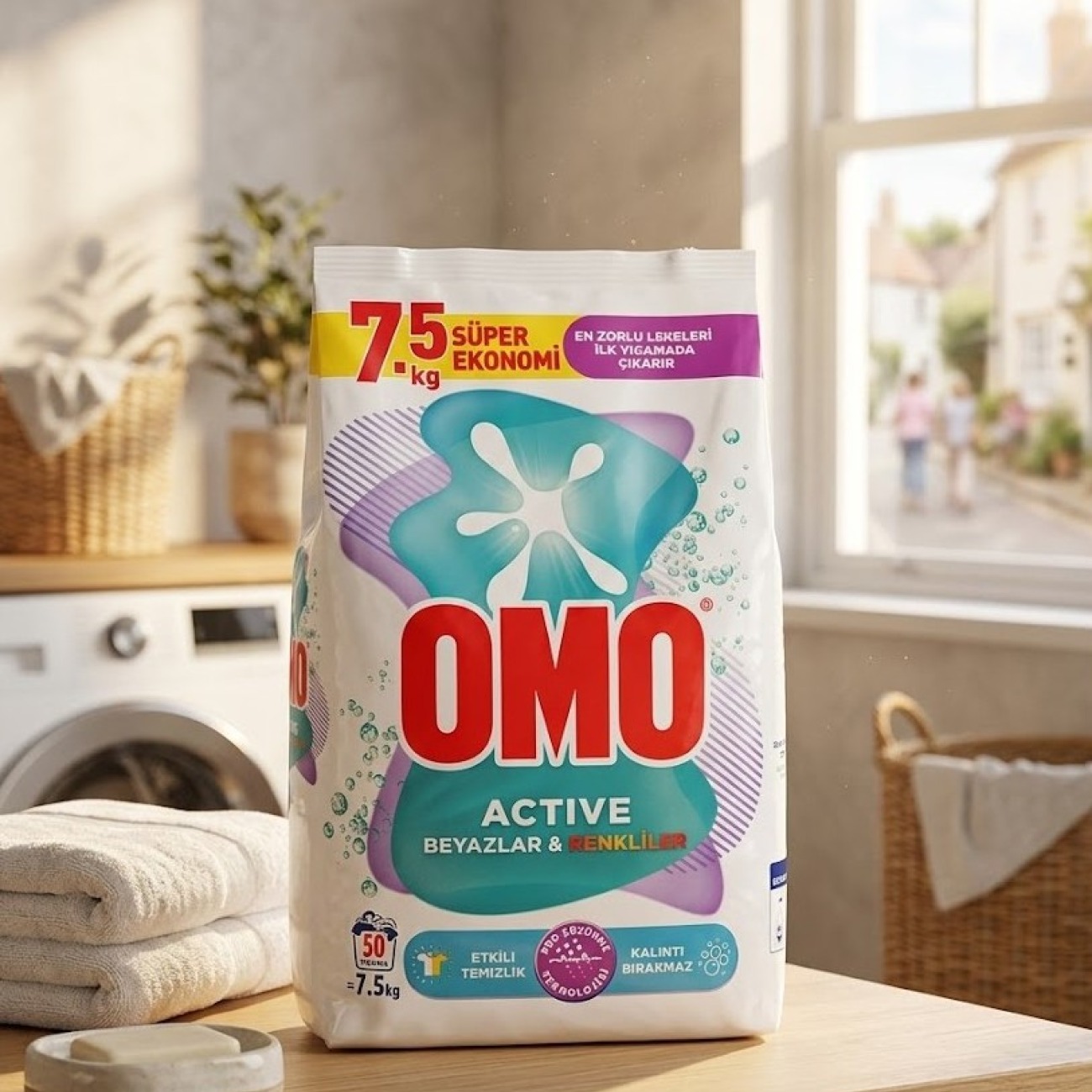 Omo Active 7.5 kg Beyazlar ve Renkliler İçin Toz Deterjan 50 Yıkama