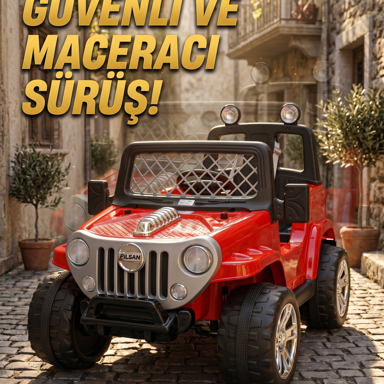 Pilsan 12V Uzaktan Kumandalı Kırmızı Akülü Cip - Güvenli Sürüş
