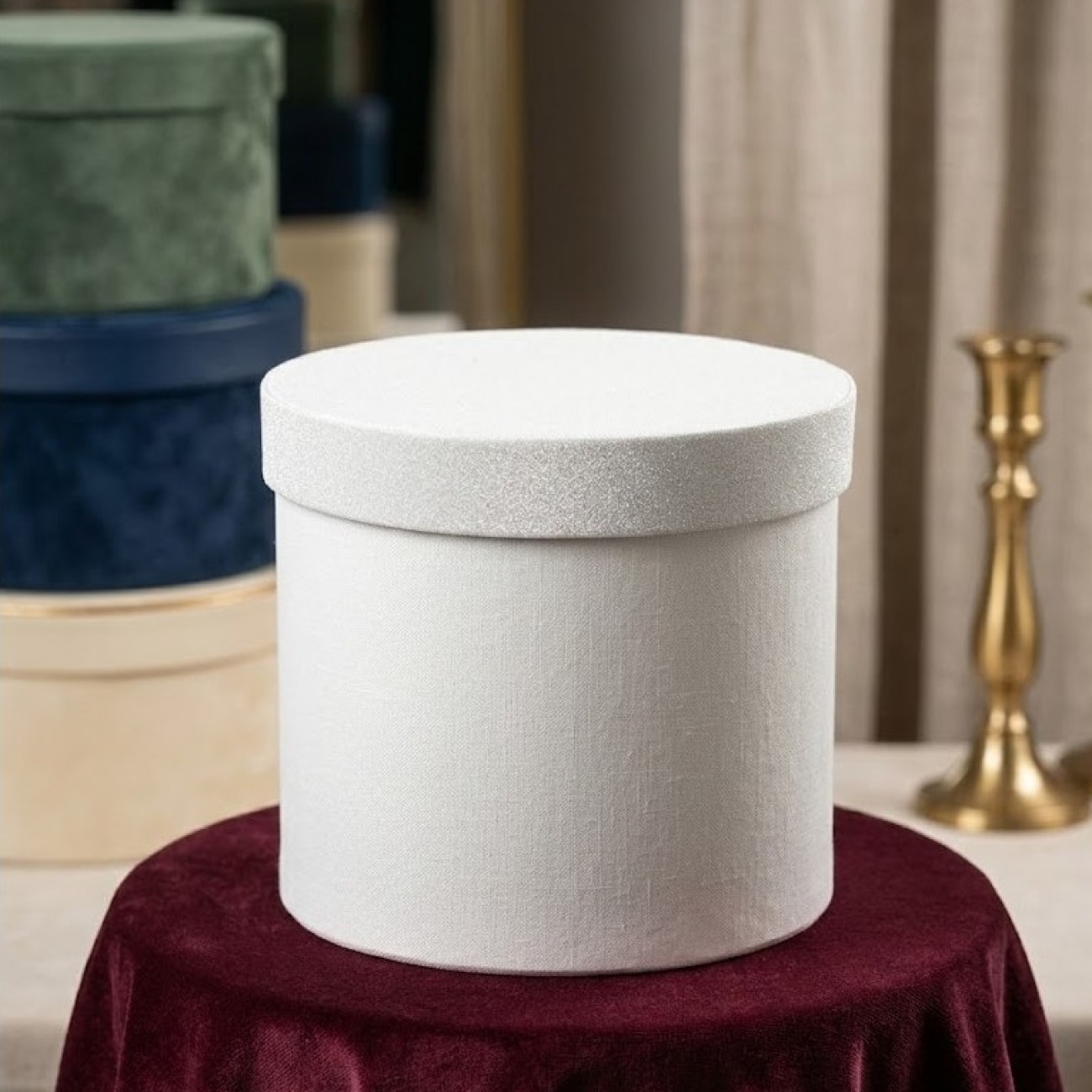 Premium Keten Dokulu Beyaz Silindir Dekoratif Hediye ve Saklama Kutusu
