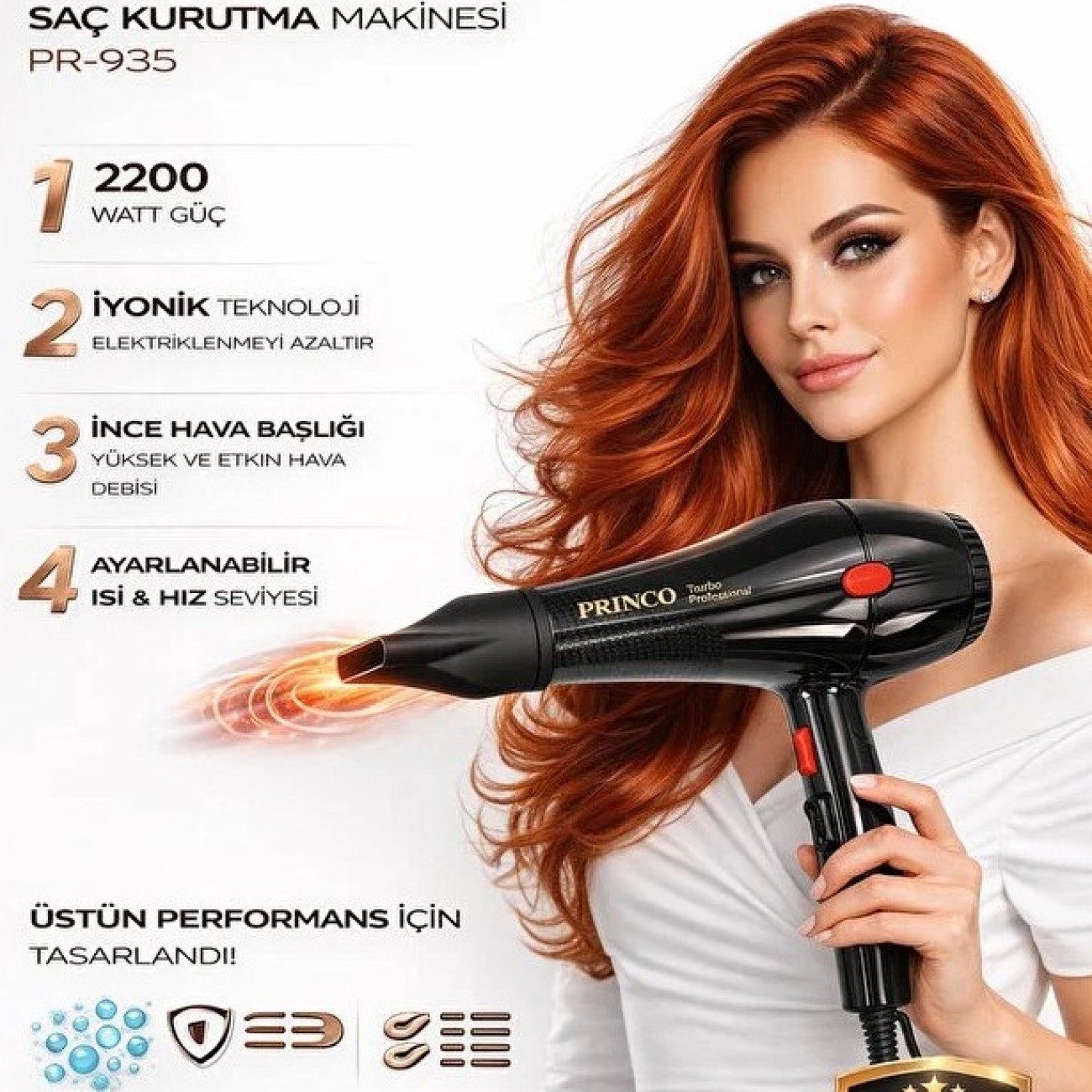 Princo PR-901 Profesyonel 2500W Turbo Fön Makinesi - Yüksek Isılı Saç Kurutma