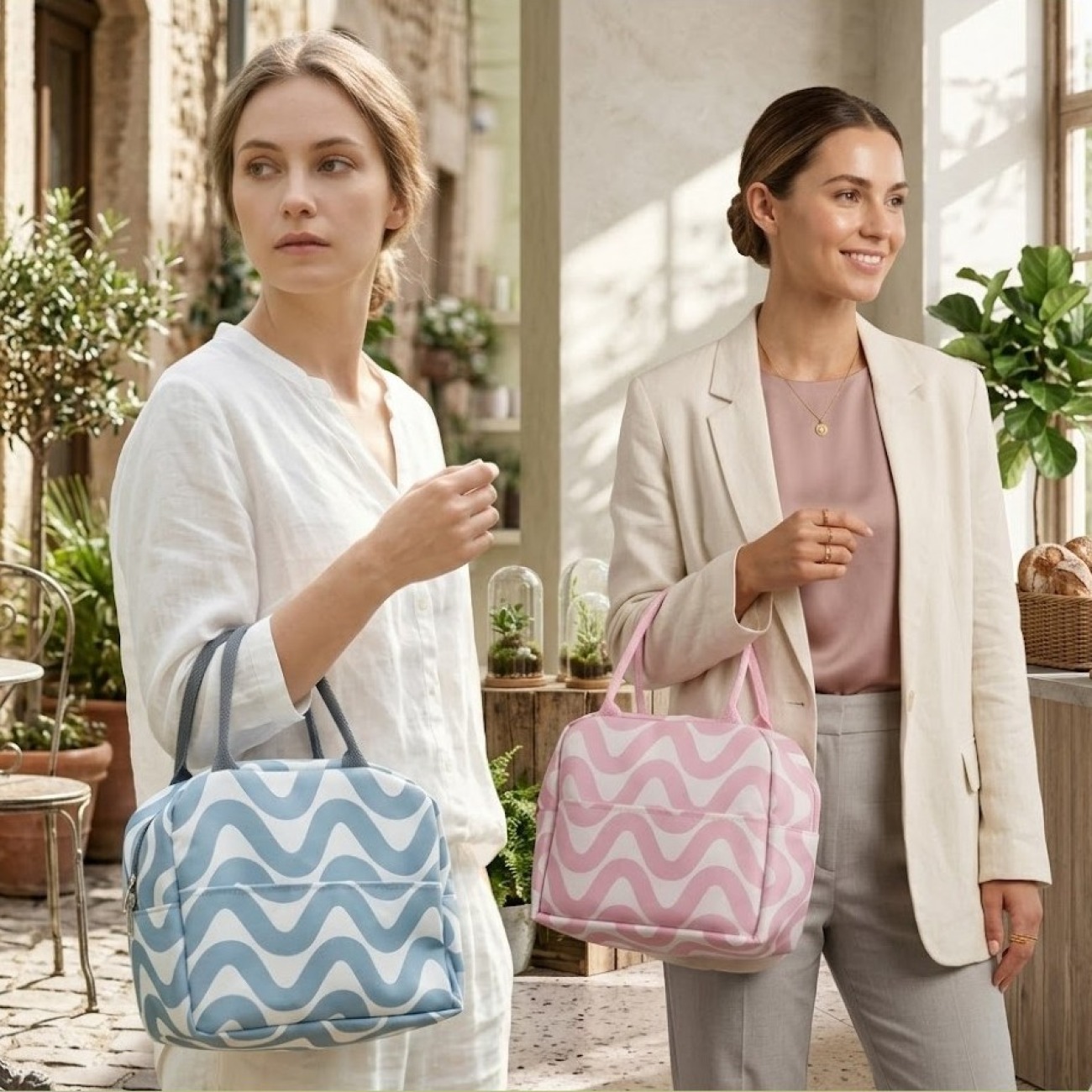 Termal İzoleli Dalgalı Desenli Şık Kadın Yemek ve Beslenme Çantası